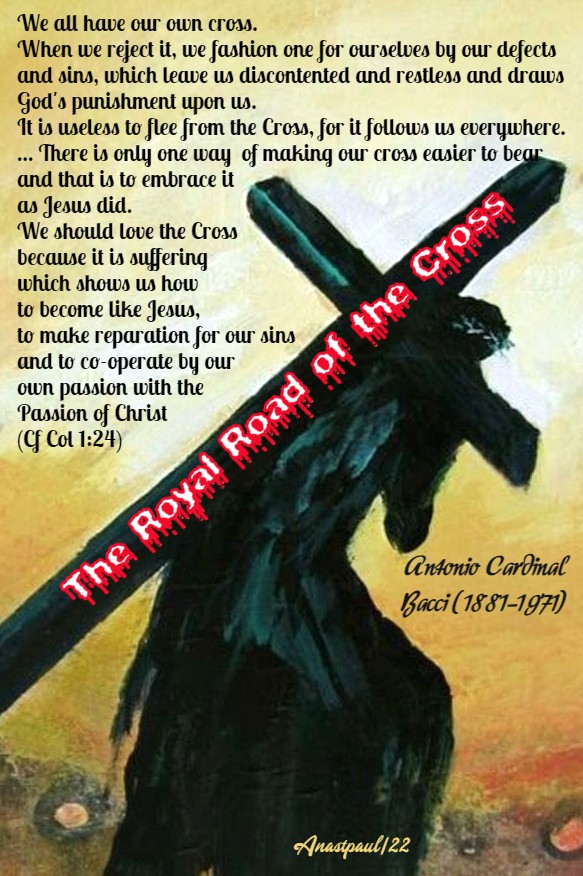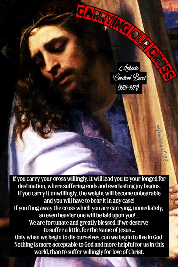 Posted in GOD ALONE!, MEDITATIONS - ANTONIO CARD BACCI, OUR Cross, QUOTES on REPARATION/EXPIATION, QUOTES on SELF-DENIAL, QUOTES on SUFFERING, QUOTES on the CROSS of CHRIST, QUOTES on TRUST and complete CONFIDENCE in GOD, SEPTEMBER-The SEVEN SORROWS of MARY and The HOLY CROSS, The HOLY CROSS, The PASSION, The REDEMPTION