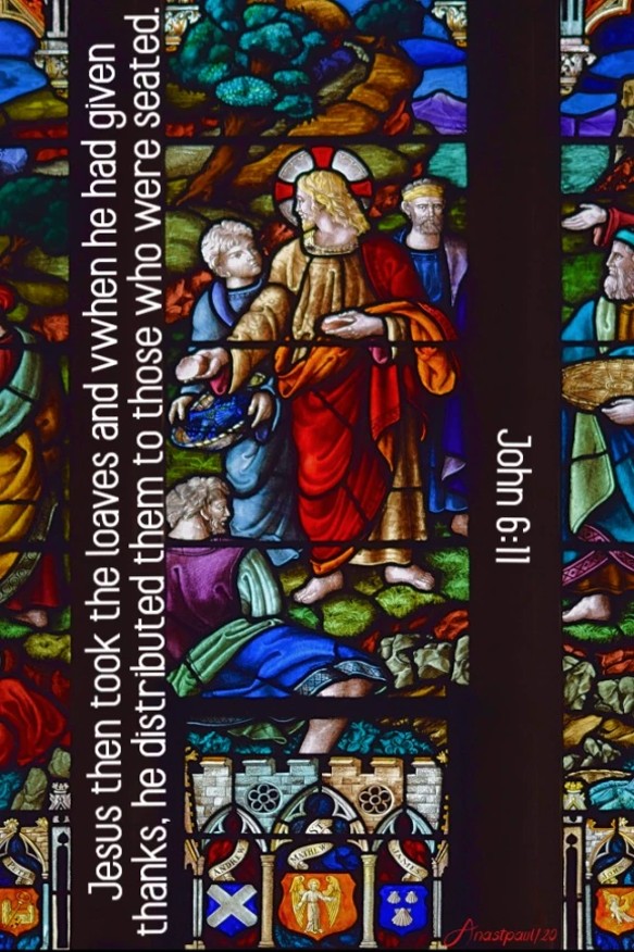 “Jesus then took the loaves of bread and having given thanks, he distributed them to those who were seated there; in the same way he gave them some fish, as much as they wanted.”