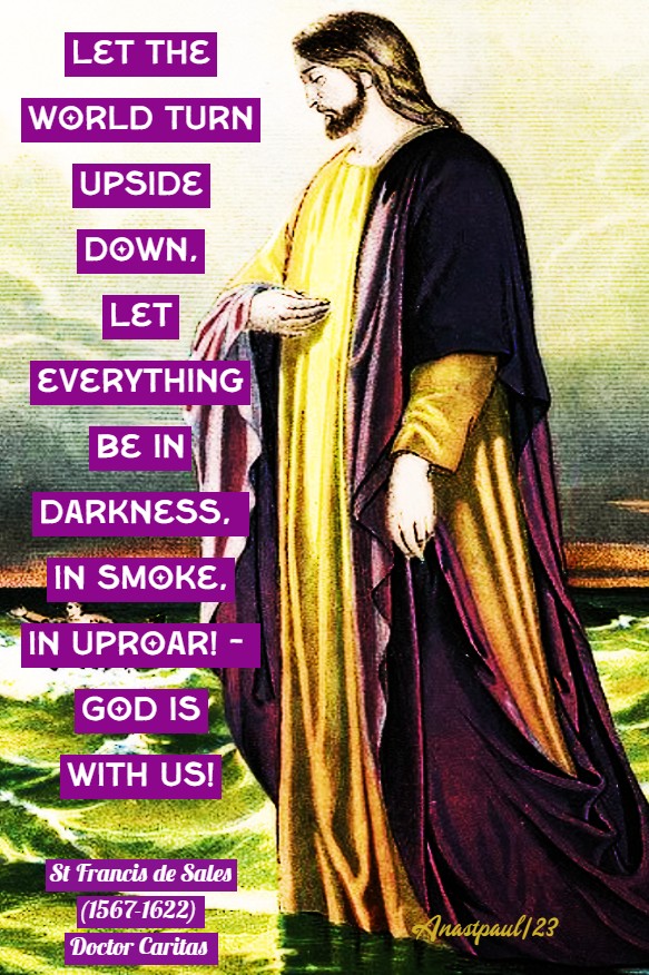 “During the fourth watch of the night, He came toward them.” In the expression “fourth watch of the night” we find the number corresponding to the signs of His care. Thus, the first watch was that of the Law; the second, that of the Prophets; the third, that of His coming in the flesh; the fourth is situated in His return in glory. But He will find the Church declining and hemmed in by the spirit of the Antichrist and all the distresses of this world. He will come when anxieties and afflictions are at their height … The disciples will be terrified even by the coming of the Lord, fearing the images of a reality distorted by Antichrist and by the deceitful imaginations infiltrating their sight. But our good Lord will speak to them directly, casting out their fear and saying: “It is I”, dispersing their fear of imminent shipwreck by faith in His coming! ”- St Hilary (315-368) Bishop of Poitiers, Father & Doctor of the Church (Commentary on the Gospel of Matthew).