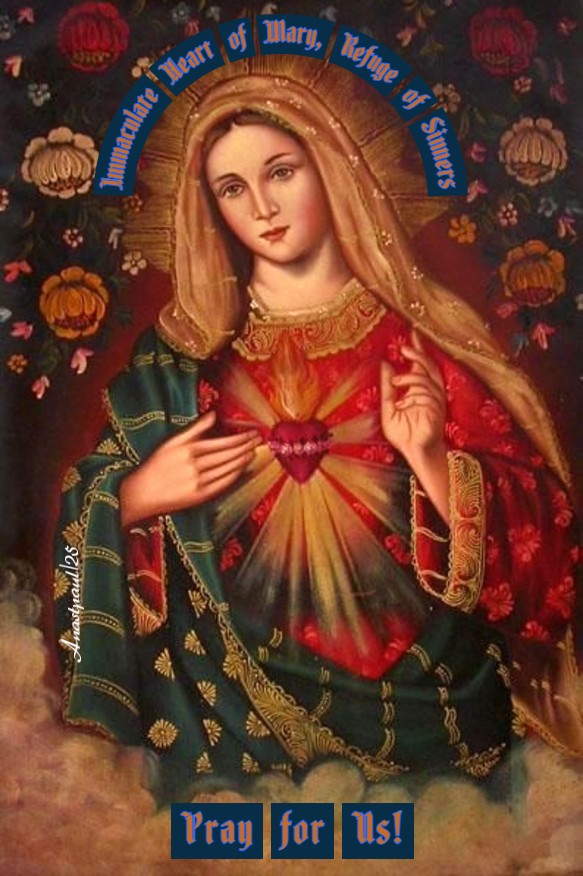 PRAYER – O God most kind, Who as a salvation for sinners and a refuge for the miserable, didst will the Blessed Virgin Mary to be the Ever Virgin Mother of Thine only Son and the distributor of His graces; grant, we pray, that while celebrating the memory of this most loving Mother’s Heart, we may obtain for sinners, the grace of conversion and an abundance of heavenly gifts, for all the faithful. Through the same Christ our Lord, in the unity of the Holy Ghost, God forever amen. (Collect).