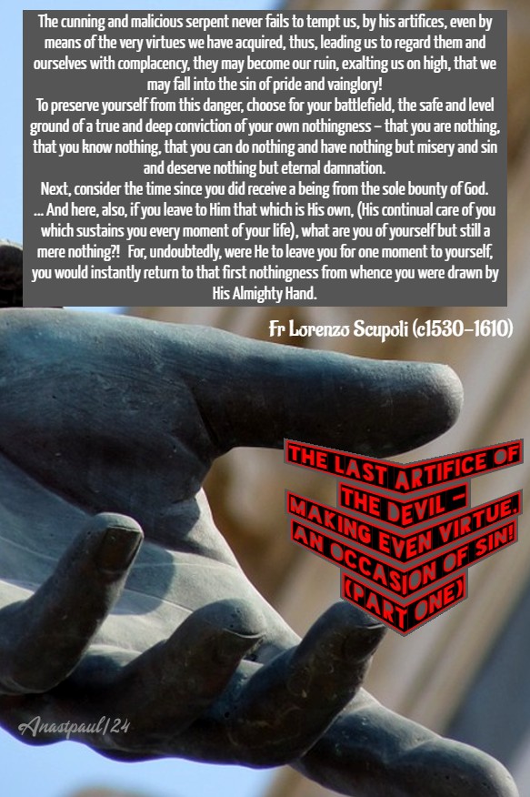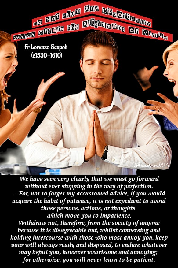 It is true that charity is, in itself, pre-eminently the Christian virtue and when Saint Paul says, “Put ye on the Lord Jesus Christ” (Romans 13:14), he refers alone to the virtue of charity, with which we must be clothed, if we are to be the servants and followers of our Lord. Can I say I am clothed with charity, so all around me see it? Do they not too often detect in me, a lamentable want of this virtue?