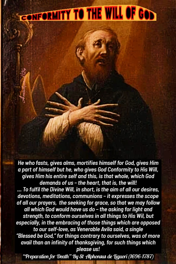 He who fasts, gives alms, mortifies himself for God, gives Him a part of himself but he, who gives God Conformity to His Will, gives Him his entire self and this, is that whole, which God demands of us – the heart, that is, the will!