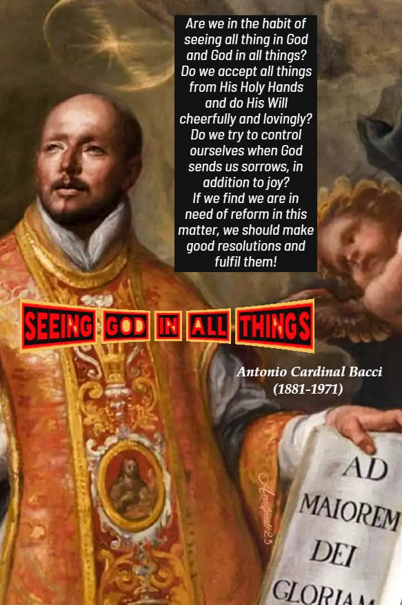 To fulfil the Divine Will, in short, is the aim of all our desires, devotions, meditations, communions – it expresses the scope of all our prayers, the seeking for grace, so that we may follow all which God would have us do – the asking for light and strength, to conform ourselves in all things to His Wil, but especially, in the embracing of those things which are opposed to our self-love, as Venerable Avila said, a single