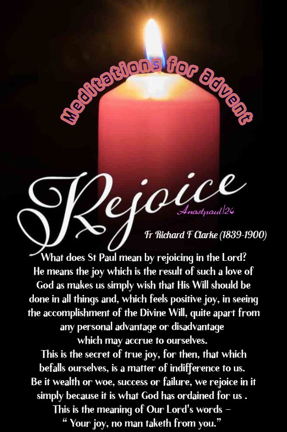 REFLECTION – “The Lord is near. Have no anxiety [at all]” (Phil 4:5-6). This is what God the Father says in the Prophet Isaias: “I am bringing on My Justice,” – that is to say, His Son; “My Salvation shall not tarry. I shall put Salvation within Zion and give to Israel My Glory” (46:13). It is what today’s Gospel says: “One is standing in your midst, One Whom you do not know” Mediator between God and men, a Man (1 Tim 2:5), Christ Jesus, arises in the camp of this world, to fight the devil. As victor, He rescues man and reconciles him with God our Father. But you do not know Him!
