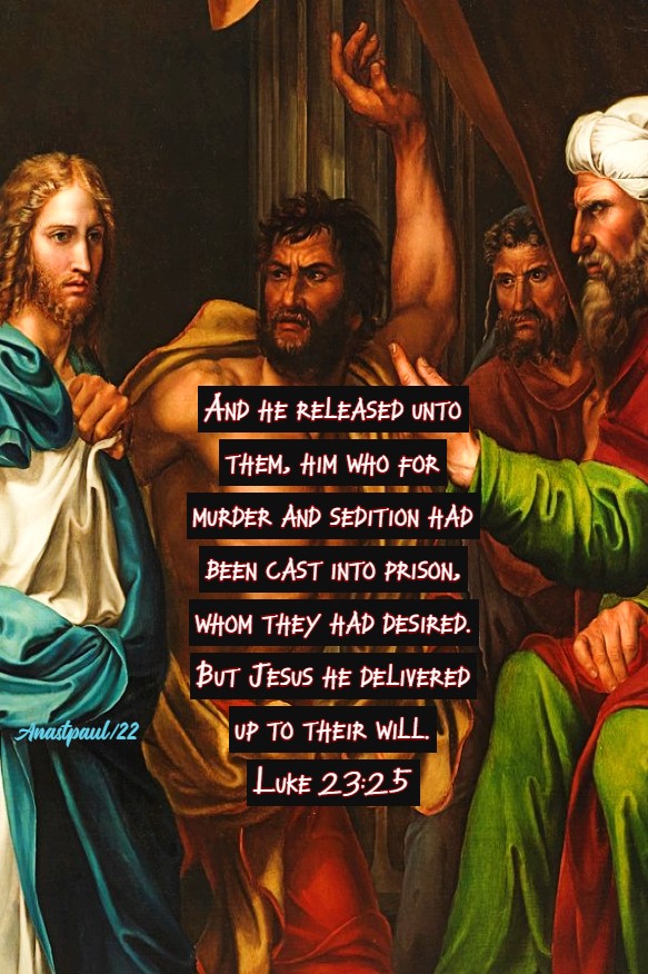 “And he released unto them, him who for murder and sedition had been cast into prison, whom they had desired. But Jesus he delivered up to their will.” – Luke 23:25
