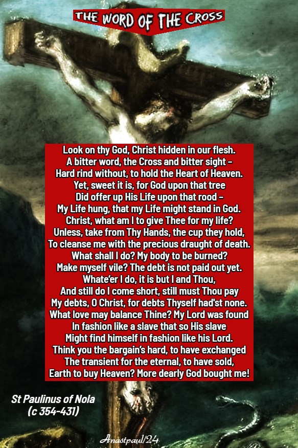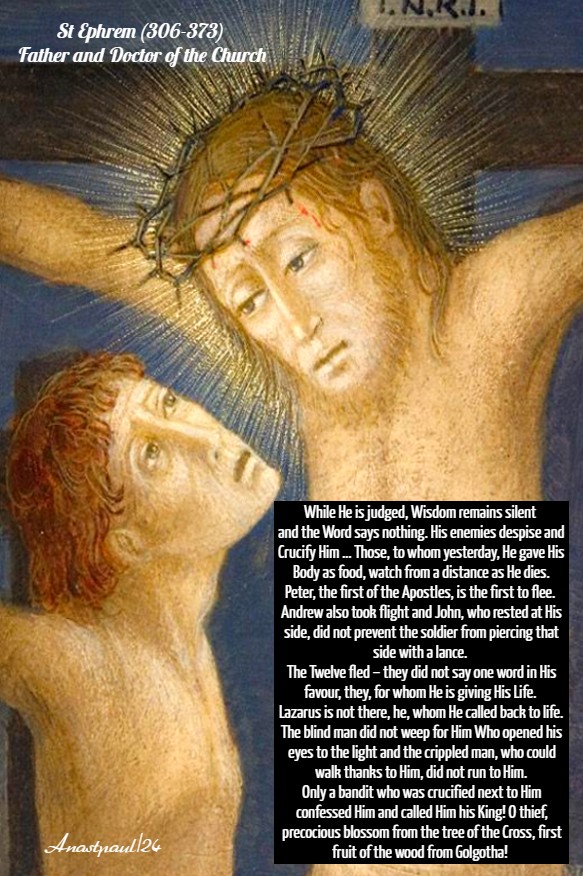Looking feebly around Him, He sees the mocking Jews, the indifferent and disrespectful Roman soldiers and a throng of curious spectators looking for something to amuse them.