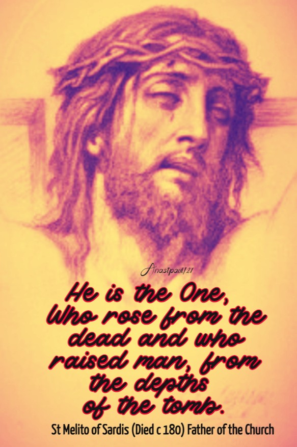 Today we leave dear Thomas à Kempis and read instead a reflection by Saint Melito, Bishop of Sardis (Died c 180) Father of the Church, whose Feast day it is today.