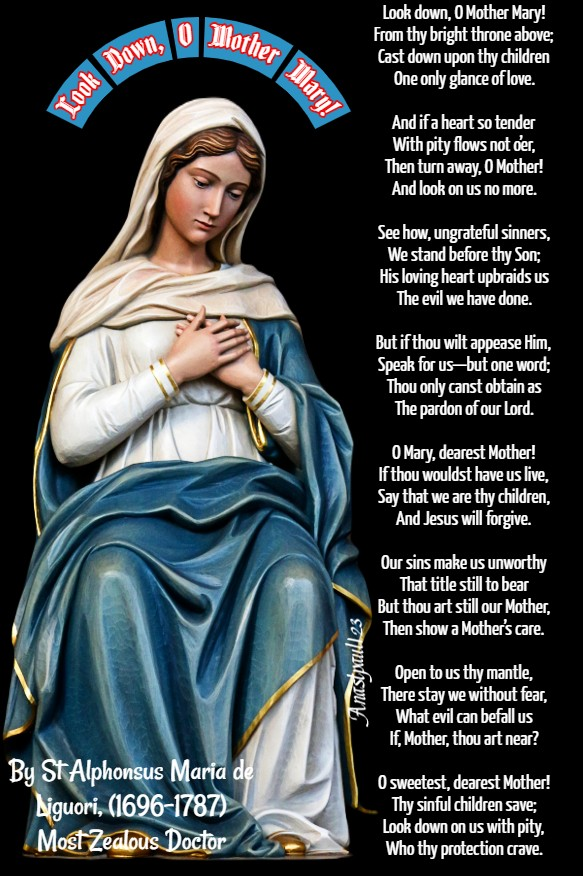O heavenly Mother, mistress sweet! it never yet was told that suppliant sinner left thy feet, unpitied, unconsoloed. Thou are clement, thou are chaste, …