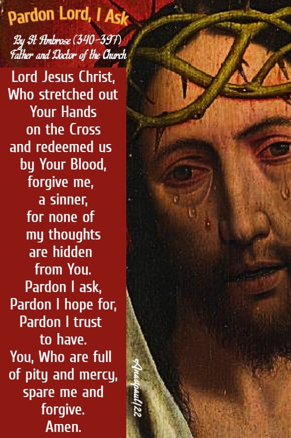 Pray humbly to the Lord, therefore, that He may give you the spirit of contrition and say with the Prophet: “Feed me, Lord, with the bread of mourning and give me to drink of tears, in full measure.”