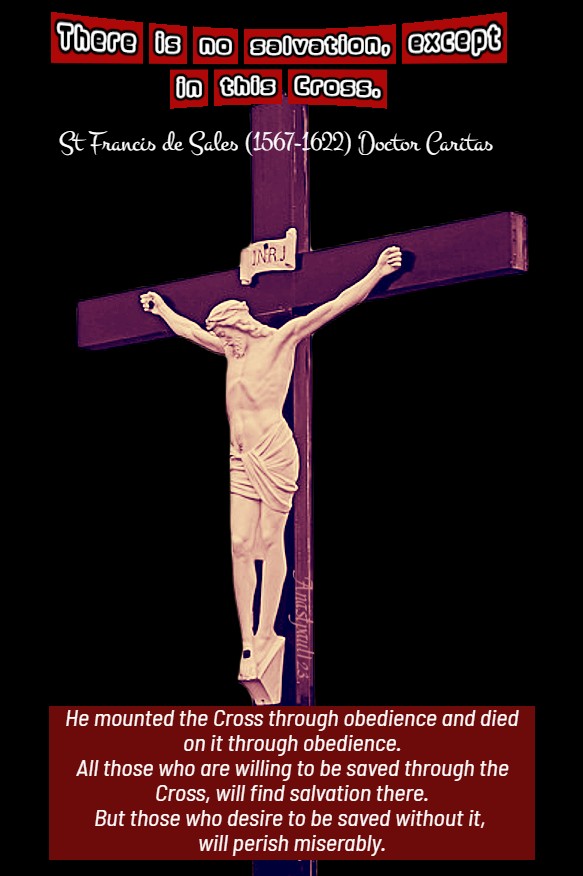 All those who are willing to be saved through the Cross, will find salvation there. But those who desire to be saved without it, will perish miserably. There is no salvation, except in this Cross.” – (Sermons of St Francis de Sales for Lent).