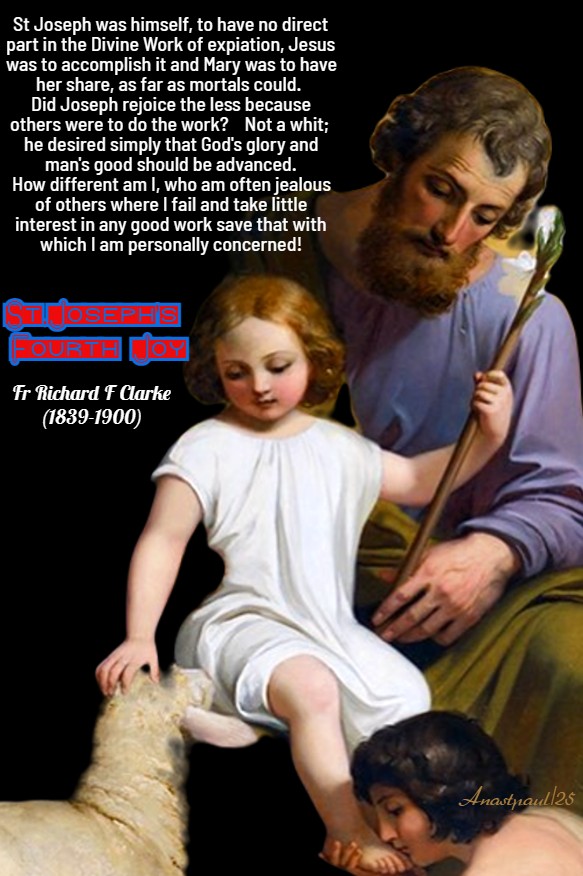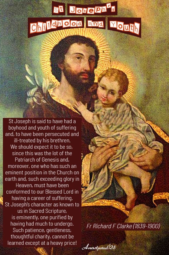 so to St Joseph, in the Angel’s message. He was to be our guardian and protector. He was to keep us safe on the dangerous journey of life! he was to console us and care for us in darkness and sorrow, while we wait in this land of exile for the summons to our true home. Joseph, too, is to bring us safely into the promised land at last.