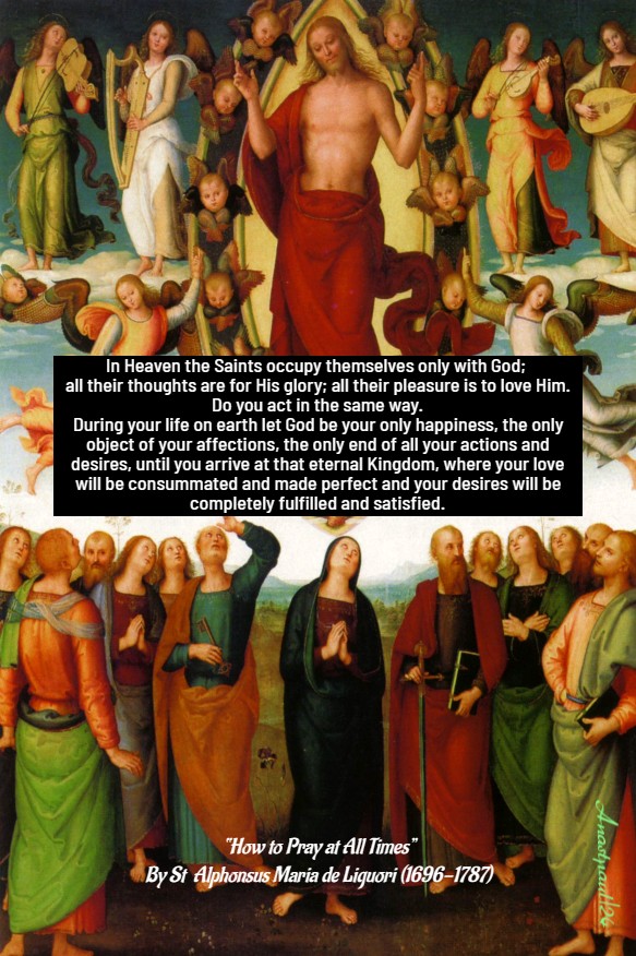 In Heaven the Saints occupy themselves only with God; all their thoughts are for His glory; all their pleasure is to love Him.