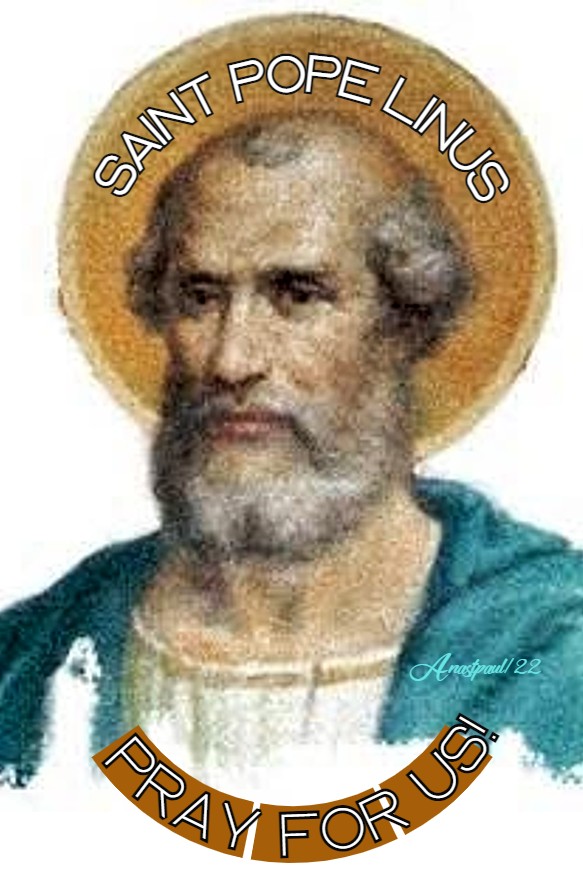 PRAYER – Look forgivingly on Thy flock, Eternal Shepherd, and keep it in Thy constant protection, by the intercession of blessed Linus Thy Sovereign Pontiff, whom Thou didst constitute Shepherd of the whole Church. Through the same Jesus Christ, Thy Son our Lord, Who lives and reigns with Thee, in the unity of the Holy Ghost, God, world without end. Amen (Collect).