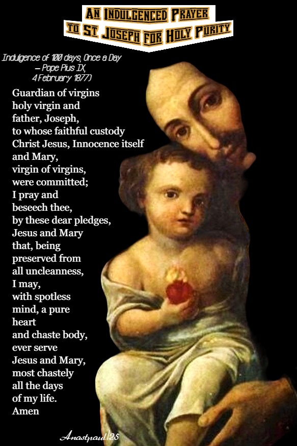 An Indulgenced Prayer to St Joseph for Holy Purity (Indulgence of 100 days, Once a Day – Pope Pius IX,4 February 1877)
