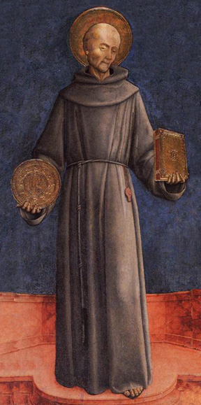 Saint of the Day – 20 May – St Bernardine of Siena OFM (1380 at Massa di Carrara, Italy to 1444 at Aquila, Italy of natural causes) “Apostle of the Most Holy Name of Jesus,” Priest, Missionary, Preacher, known as the “Apostle of Italy,” the “Star of Tuscany,” and the “Second Paul.” Saint Bernadine is one of the most renowned Franciscan preachers and reformers, a prolific writer who graced the Church with countless sermons and writings and is largely responsible for increasing the popular devotion to the Holy Name of Jesus. St Bernadine is also remembered for his ardent devotion to Our Blessed Mother and the Holy Family. His numerous Patronages include – against chest and lung problems, respiratory illnesses, of Advertising and Communications and Public Relations workers, against gambling and gambling addictions, of Italy, Diocese of San Bernardino, California, of the Diocese of Capri, Italy, of the Italian Cities of Altavilla Irpina, Aquila, Camaiore, Carpi, Castelspina, Alessandria, Montecchio, Trevignano Romano Venice.