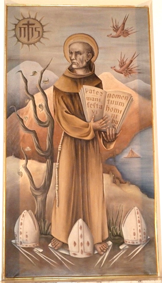 One day while he was kneeling at the foot of his crucifix, praying for guidance, Bernadine heard the voice of Jesus say to him: “My son Bernardine, you see Me hanging on the Cross, in a state of total denudation. If you love Me and want to walk in My footsteps, fasten yourself also to the cross, divested of everything.” Following this divine message, Bernadine joined the Franciscan Order, distinguishing himself through obedience, which he considered the virtue of highest import.
