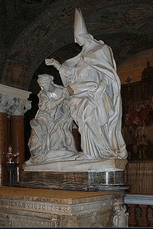From that time Genevieve enjoyed a heroine’s status and used her influence and wonders on the city’s behalf. For example, she persuaded Childeric, who had conquered Paris, to release many captives. And in 451, when Attila the Hun was advancing on the city, she got the populace to pray and fast for their safety. The invader changed his course and Paris was spared. She also became a trusted adviser to Clovis, the king of the Franks.