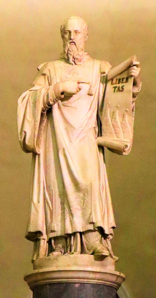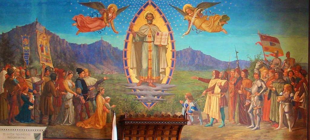 Marinus died with the words, “I leave you free from both men” these are considered the founding myth of the State of San Marino which, was founded after Marinus’ death and is therefore the oldest State in the world with a republican constitution and emphasise its independence from the Emperor and the Pope.
