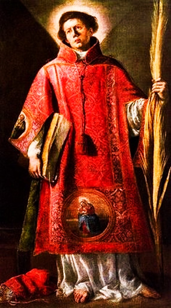 He was born of Christian parents, in the middle of the Third Century, at Osca, a City in Aragon. His father’s name was Orentius, his mother’s, Patientia, both are honoured as Saints. Such parents gave a holy education to their son. He early evinced, on all occasions, an especial love for God, a fearless constancy in the true faith and a watchful care over the preservation of his purity. While yet young in years, he went to Rome and won, by his blameless life, the highest regard of all who came in contact with him. Pope Xystus or Sixtus Ordained him Deacon. His functions were to serve the Pope at the Altar, to take charge of the treasures of the church and to distribute the revenues which were destined for the maintenance of the sextons and the poor.