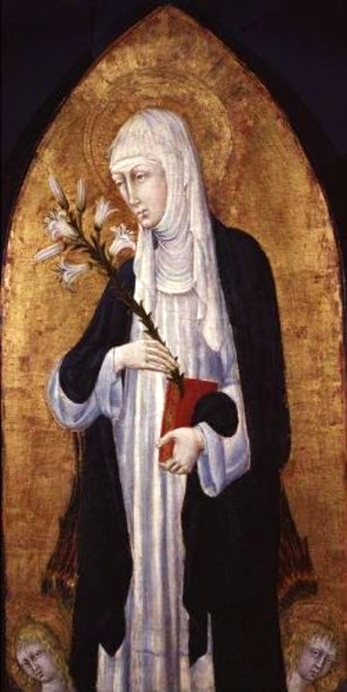 In Catherine we can make out the presence of theological and mystical sources on which it was normal to draw in her time. In particular, we find an image typical of Dionysius the Areopagite – the thread of gold that links the human heart to God Himself. When God purified man, he bound him with the finest golden thread, that is, His love and draws him toward Himself with such strong affection, that man i,s as it were “overcome and won over and completely beside himself.” Thus man’s heart is pervaded by God’s love that becomes the one guide, the one driving force of his life (cf. Vita Mirabile, 246rv). This situation of being uplifted towards God and of surrender to His will, expressed in the image of the thread, is used by Catherine to express the action of divine light on the souls in purgatory, a light that purifies and raises them to the splendour of the shining radiance of God (cf. Vita Mirabile, 179r).