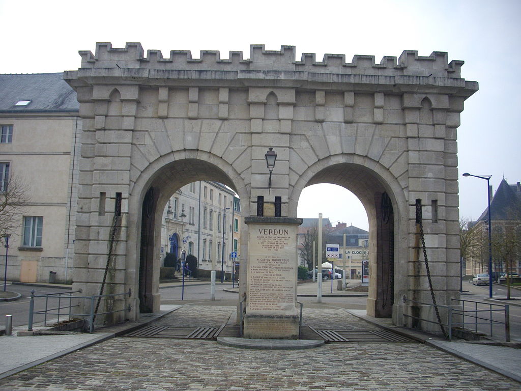 Added to the ramparts of the City of Verdun in the Nineteenth Century is a gate called “St Paul’s Gate.” iI is composed of two arched passages (entry and exit), each one protected by a drawbridge. The Gate allowed the Army conscripts arriving at the Station to enter the City centre and reach the Jeanne d’Arc Barracks. In the 1920s the ramparts around the lower City, weakened by the bombardments of 1916, were pulled down. The only surviving remnants are the Saint-Paul Gate along with the Tour Chaussée. The former has been decorated with commemorative plaques dedicated to victory in the Battle of Verdun and to the reconstruction of the City., believed, of course, to be due to the prayers of their people for the Intercession of the Blessed Virgin of Verdun and the beloved St Paul.