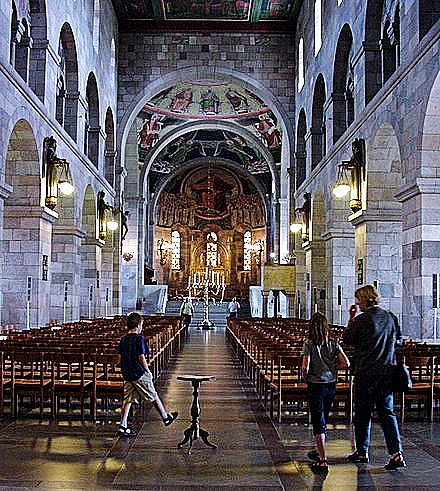 Pirminus died in his Monastery in Hornbach. As early as the end of the 8th Century, he was referred to as a Saint in a manuscript from Metz . After 814, Abbot Wyerund of Hornbach Monastery had Pirminus’ remains exhumed and interred in the Church he had recently built. In 827, Pirminus was first mentioned as the Church’s Patron Saint, and Hrabanus Maurus wrote a Tomb Inscription. The Tomb was excavated in 1953 and, in 1957, the present Chapel was built over it.