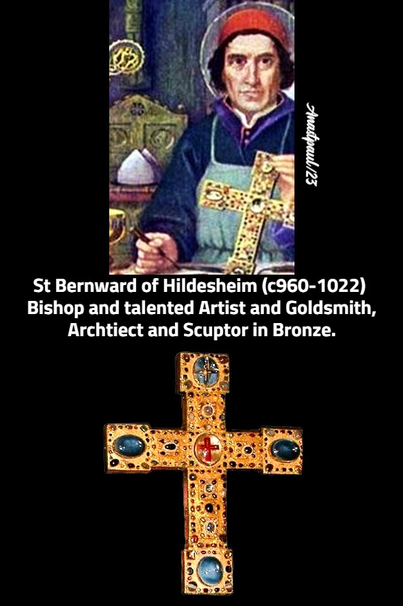 Saint of the Day – 20 July – St Bernward of Hildesheim (c960-1022) Bishop. Bernward was the thirteenth Bishop of Hildesheim from 993 until his death in 1022. He was an exceptionally gifted and talented Creative Artist and Craftsman, in particular, in the creation of Sacred Vessels and adornments of Holy items, in precious metals. Born – c960 at Saxony and died on 20 November 1022 of natural causes. Patronages – Architects, Builders, Goldsmiths, Sculptors, Craftsmen, Painters, Artists. . Also known as – Berward, Bernward. Canonised in 1193 by Pope Celestine III.