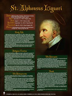 Alphonsus Maria de Liguori was born of a noble family at Naples and from his early youth, gave clear proofs of sanctity. While he was still a child, his parents once presented him to St Francis Girolamo, of the Society of Jesus. The Saint blessed him and prophesied that he would reach his ninetieth year that he would be raised to the Episcopal dignity and would do much good for the Church.