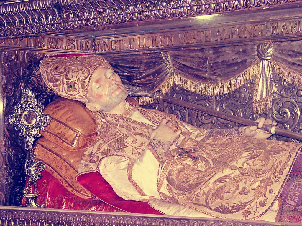 And yet, until a few decades ago, hundreds of the faithful went to the Santa Maria della Mercede (Holy Mary of Mercy) and St Alphonsus Church in Naples, also known by the name of the Redemption of the Captives, in Via San Sebastiano, a few steps from the Conservatorio di San Pietro a Majella, the same place where the young and noble Alfonso de Liguori laid his sword at the foot of the Statue of the Virgin to witness, on the Anniversary of the Saint’s death, the liquefying of his blood preserved in an ampoule set in a marvellous Reliquary.
