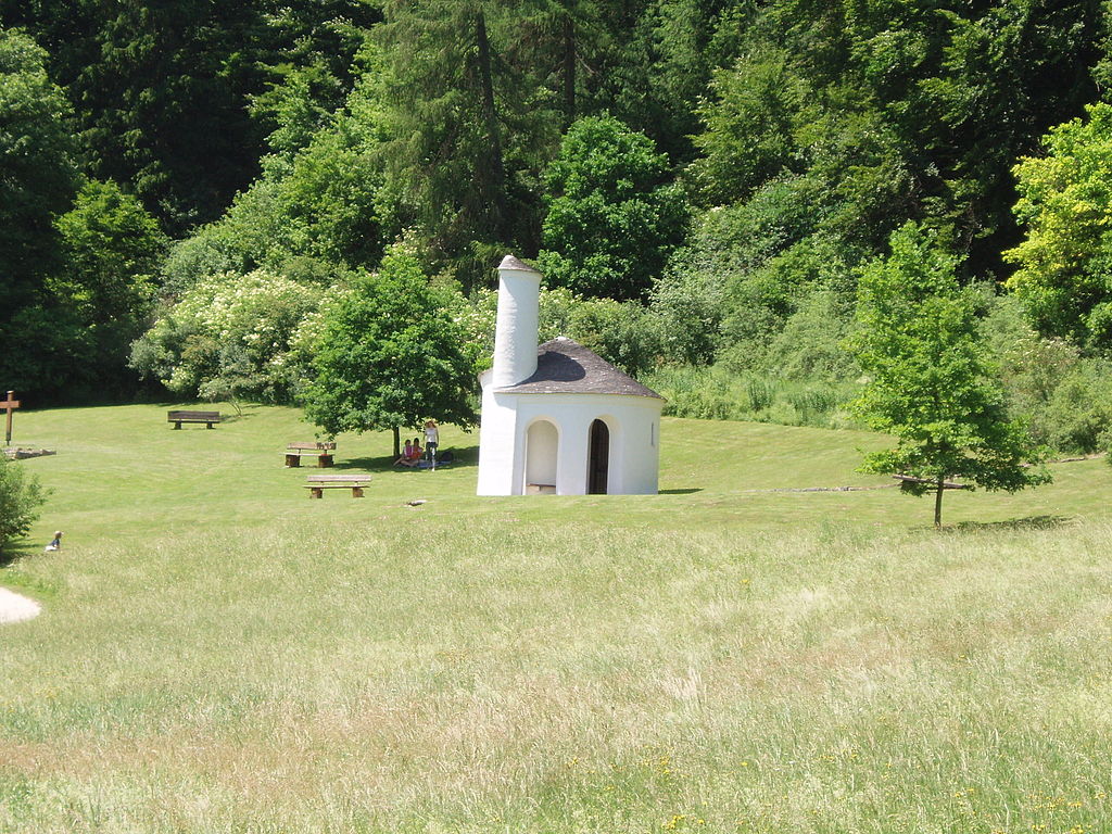 The body of the maid, generally venerated as a Saint, was loaded onto a cart and two untamed oxen hitched to it. They calmly carried her body to Suffersheim. Here they stopped. Thus it was understood that Gunthildis should be buried there. Soon afterwards, many miracles occurred at her grave. As a result, a Chapel was built over this grave, although it no longer exists. Today, next to the foundations of this Chapel uncovered in 1957, there is a new Gunthildis Chapel built from 1993 to 1995.