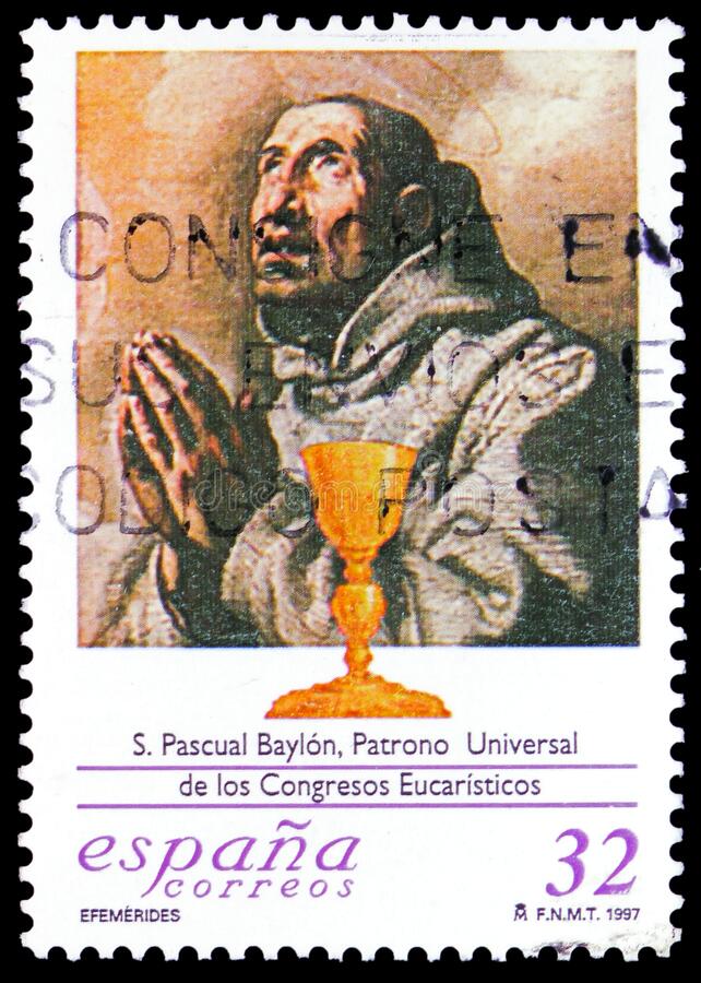 The Roman Martyrology states: “At Villa Real near Valencia in Spain, Saint Pasquale Baylon, a religious of the Order of Friars Minor, who, always showing himself caring and kind to everyone, constantly venerated the Mystery of the Most Holy Eucharist with fervent love.”