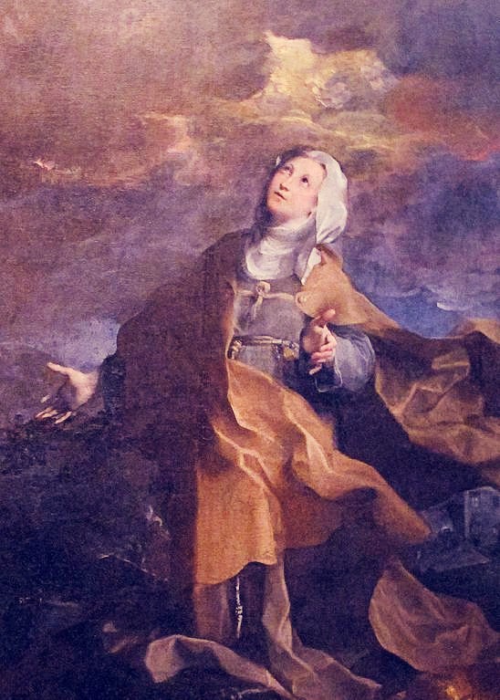 Her virtues and miracles procured for her the greatest veneration from all. Our Lord called her to Himself in the fifty-sixth year of her age and she was Canonised in 1384 by Pope Paul the Fifth.
