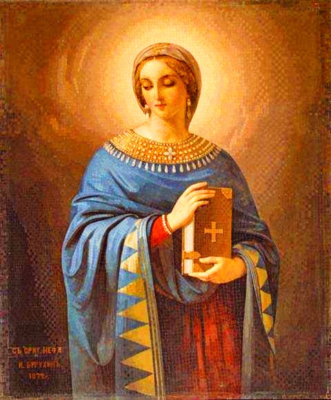 She was widowed and is also the Patron of widows. She is said to have died in the early 340s
