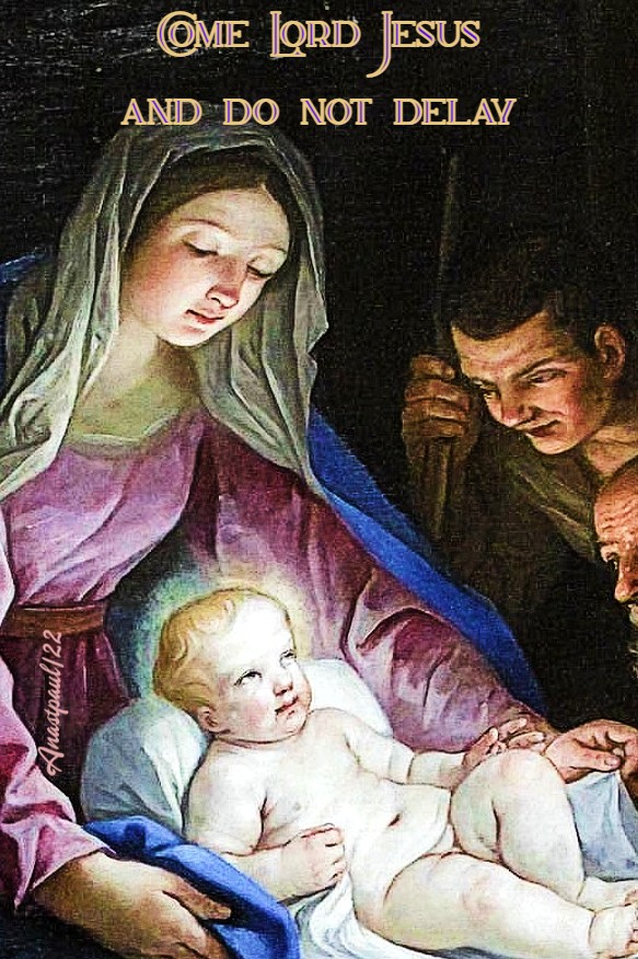 PRAYER – Lend Thy ear to our prayers, O Lord, we beseech Thee and brighten the darkness of our minds by the grace of Thy coming. Through the same Jesus Christ, Thy Son our Lord, Who lives and reigns with Thee, in the unity of the Holy Ghost, God, world without end. Amen (Collect).