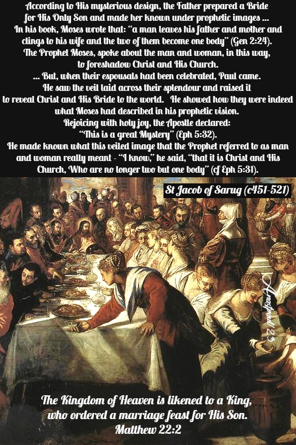 With these other mysteries he makes known the Mystery of our Redeemer, declaring that He has stood among men and not been known. The Lord appeared in a human body – He came as God in flesh, visible in His Body, invisible in His Majesty. He goes onto say about Him: “He who comes after me, was made before me” (Jn 1:15) … he revealed the reason for this precedence when he said: “because He was before me. ” He means, “Even though He was born after me, He surpasses me, in that the time of His Birth does not limit Him. He, Who is born from His Mother in time, was begotten of His Father before time!”