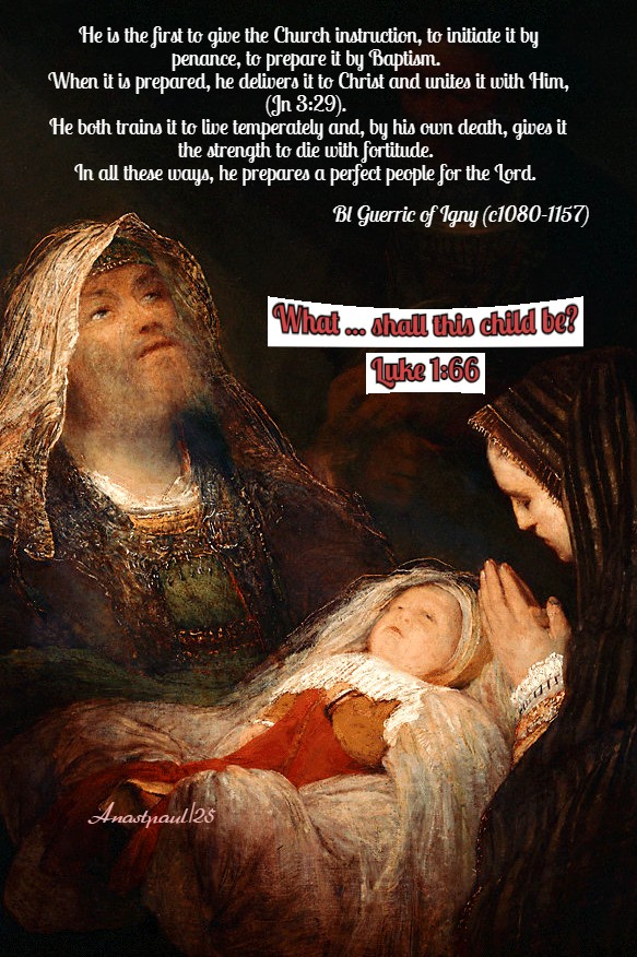 REFLECTION – “I baptise with water but, in the midst of you, there has stood One Whom you do not know.” John did not baptise with the Spirit but, with water, since he was unable to take away the sins of those being baptised. He washed their bodies with water but not their hearts with pardon. Why did one whose baptism did not forgive sins baptise, except that he was observing his vocation as forerunner? He, whose birth foreshadowed a greater birth, by his baptising, foreshadowed the Lord, Who would truly baptise; he ,whose preaching made him the forerunner of Christ, by baptising, also became his forerunner, using a symbol of the future Sacrament.