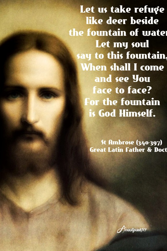 “Let us take refuge like deer beside the fountain of waters. Let our soul thirst, as David thirsted, for the fountain. What is that fountain? Listen to David – With you is the fountain of life. Let my soul say to this fountain, When shall I come and see You face to face? For the fountain is God Himself.”