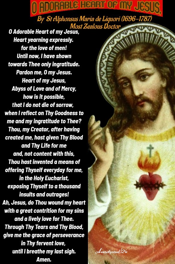 O Adorable Heart of my Jesus! By St Alphonsus Maria de Liguori (1696-1787) Most Zealous Doctor