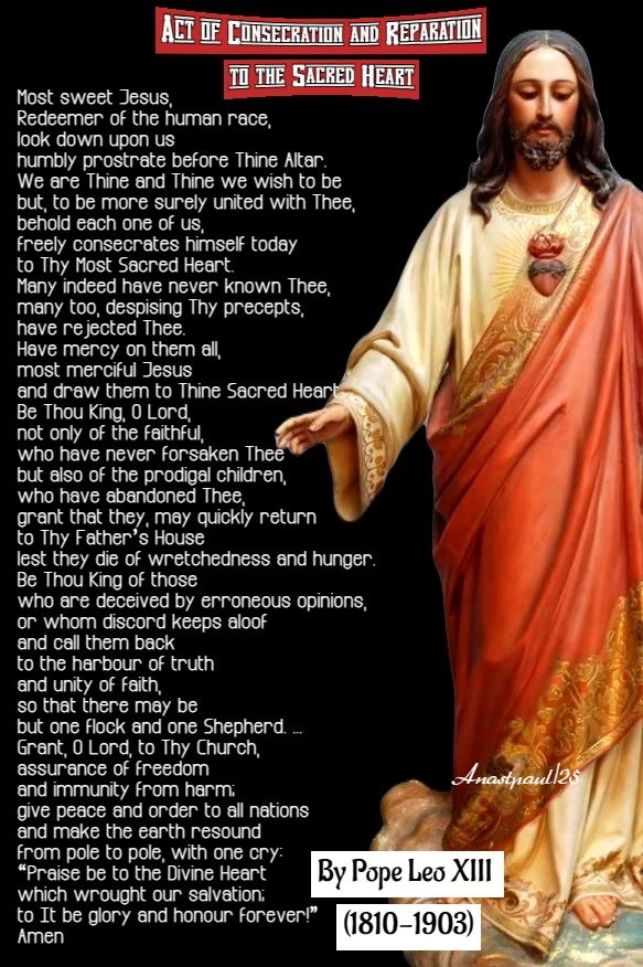 Consecration to the Sacred Heart By Pope Leo XIII (1810-1903) Pope from 1878-1903