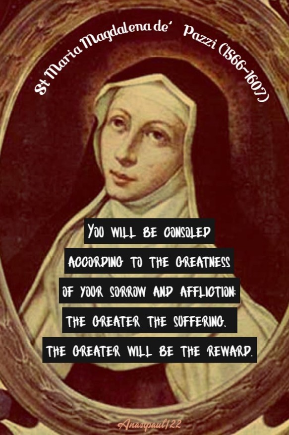 “You will be consoled according to the greatness of your sorrow and affliction; the greater the suffering, the greater will be the reward.”