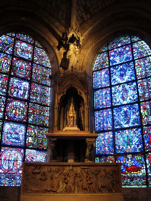 Stained glass window in a Franciscan chapel Paris, FranceStained glass window in Our Lady of the Rosary Church Saint-Ouen, France