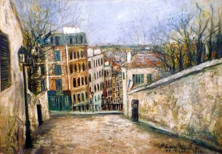 The beautiful Rue du St Denis, as seen by painter Utrillo in 1910Saint Denis, holding his head in the quiet square Suzanne Buisson, Montmartre