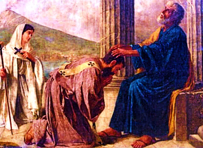 As a teenager, he began to wonder about the purpose of his life. He wanted to visit the most famous holy manof that region, the Bishop St Lupus of Troyes who, in the year 451 had saved the city from the invasion of Attila the Hun, by offering himself as a hostage. The elderly prelate was not slow to see sincere Christian virtues in the young man and desiring to see them brought to fruition for the glory of the Lord and the Church and so, St Lupo kept him with him as a disciple and assistant. It was the happy meeting of two true men of God.