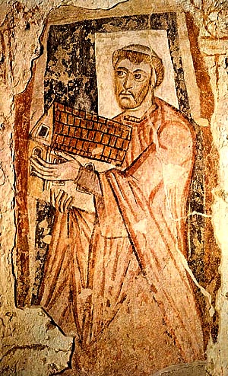 Benet was born of the highest Anglo-Saxon nobility. He held office in the household of King Oswy (Oswiu) of Northumbria. But, after a journey to Rome, the first of his five such trips, when his was 25 (653) in the company of Saint Wilfrid, the saint renounced his inheritance and dedicated himself to God. He then spent his time in studying the Scriptures and prayer. Following a second visit to Rome with Oswy’s son Aldfrith in 666, he became a Monk in the Monastery of Saint-Honorat in Lerins near Cannes, France, taking the name Benedict. He remained there for two years strictly observing the rule.