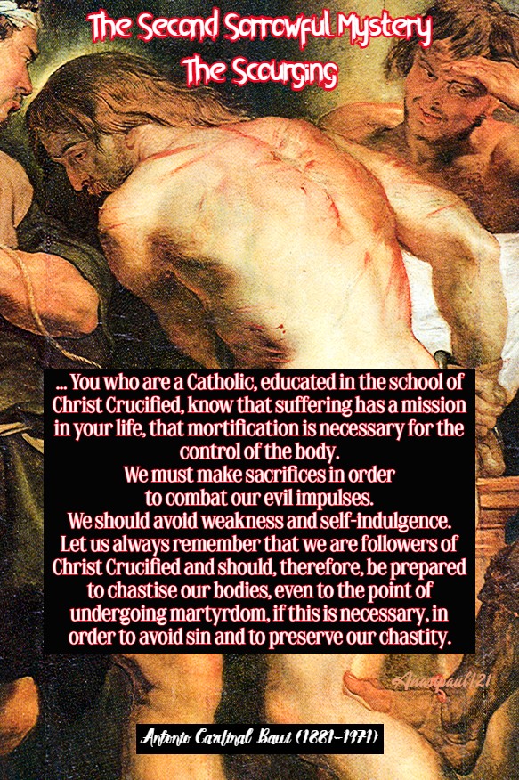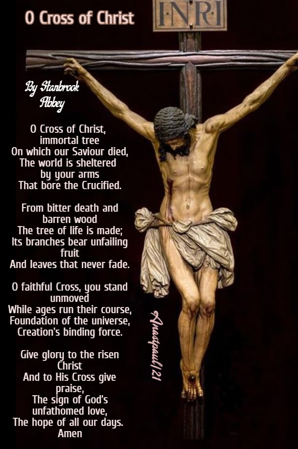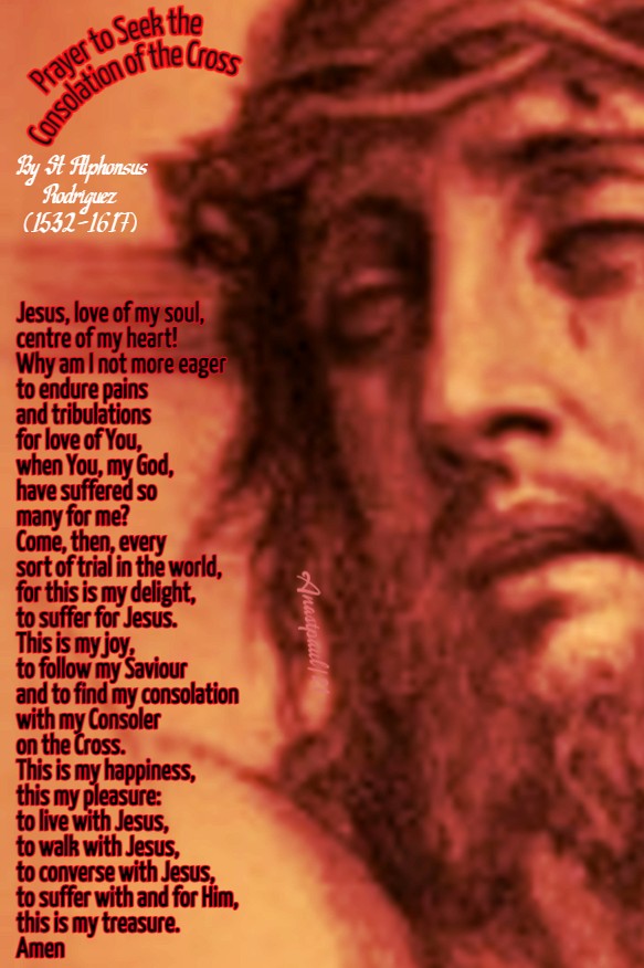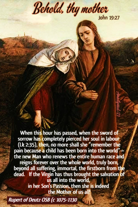 REFLECTION – “Like a sheep beholding its lamb being led to the slaughterhouse (Is 53 :7), Mary followed behind with the other women, consumed with sorrow and crying: “Where are Thou going, my Child? Why do Thou end Thy swift course (Ps 18:6) in this way? Are there still other wedding feasts in Cana? Is it there that Thou are now going so swiftly, to make wine for them out of water? May I come with Thee, O my Child, or would it be better to wait? Speak one word to me, O Word, do not pass before me in silence…, oh Thou Who are my Son and my God…