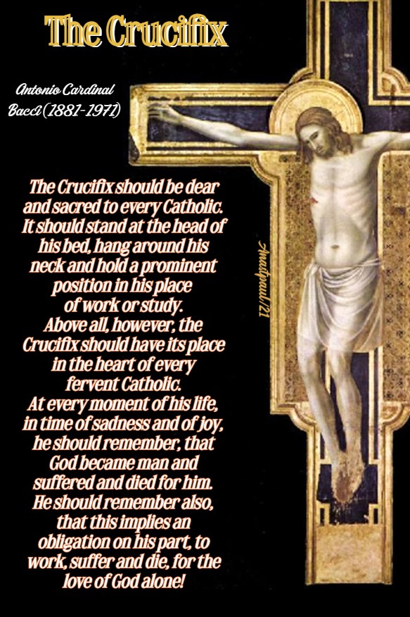 “Thou art going towards an unjust death and no-one shares Thy suffering. Peter does not go with Thee, he who said: “Even if I have to die, I will never deny Thee” (Mt 26:35). Thomas, who exclaimed: “Let us all die with Him!” (Jn 11:16), has left Thee. And the others too, Thy friends, those who are to judge the twelve tribes of Israel (Mt 19:28), where are they now!? Not one remains. But Thou alone, O my Child, Thou dies for all. This is Thy recompense for having saved and served all humankind, my Son and my God.”