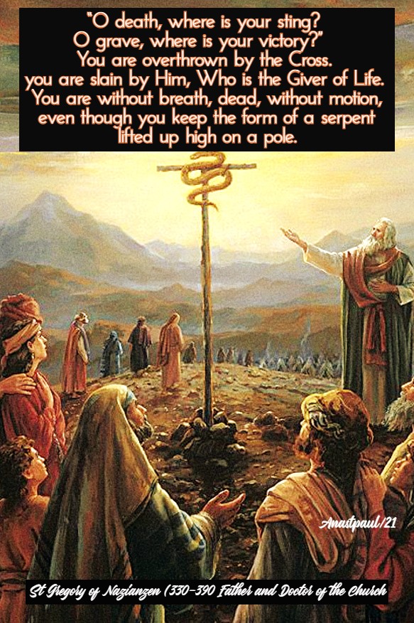Turning to Mary, His Mother, He who came forth from her, cried out: “Mother, why do thy weep?… Am I not to suffer? Not to die? Then how could I save Adam? Am I not to dwell in the tomb? How should I bring back to life, those who inhabit the dwelling of the dead? Why do thou weep? Shout aloud, rather: ‘My Son and my God, is suffering of His Own Free Will.’ O wise Virgin do not make thyself like those who are foolish (Mt 25:1); thou stands in the wedding hall, do not become as though thou stood outside… Weep no longer, then but rather say: ‘Take pity on Adam, be merciful towards Eve, O my Son and my God.’