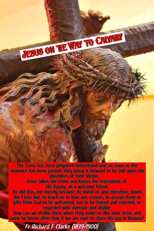 REFLECTION – “Like a sheep beholding its lamb being led to the slaughterhouse (Is 53 :7), Mary followed behind with the other women, consumed with sorrow and crying: “Where are Thou going, my Child? Why do Thou end Thy swift course (Ps 18:6) in this way? Are there still other wedding feasts in Cana? Is it there that Thou are now going so swiftly, to make wine for them out of water? May I come with Thee, O my Child, or would it be better to wait? Speak one word to me, O Word, do not pass before me in silence…, oh Thou Who are my Son and my God…