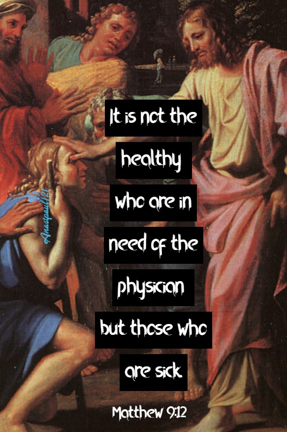 It is not the healthy who need a physician but they who are sick. But go and learn what this means: ‘I desire mercy, and not sacrifice.’ For I have come to call sinners, not the just.”- Matthew 9:12-13