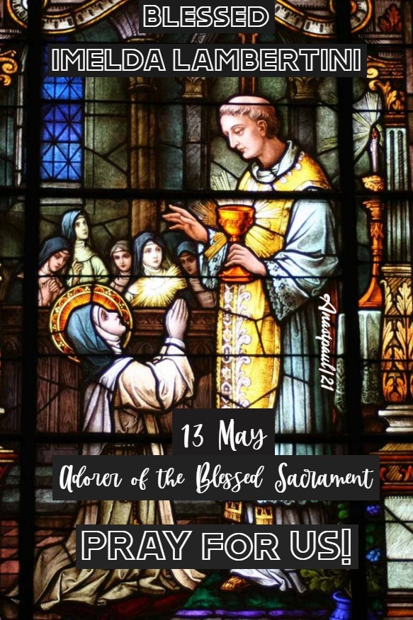 One Minute Reflection – 13 May – “Mary’s Month” – Thursday of the Sixth Week of Easter, Readings: Acts 18: 1-8, Psalms 98: 1, 2-3, 3-4, John 16: 16-20 and the Memorial of Blessed Imelda Lambertini (1322-1333) Child Mystic, “Adorer of the Blessed Sacrament”